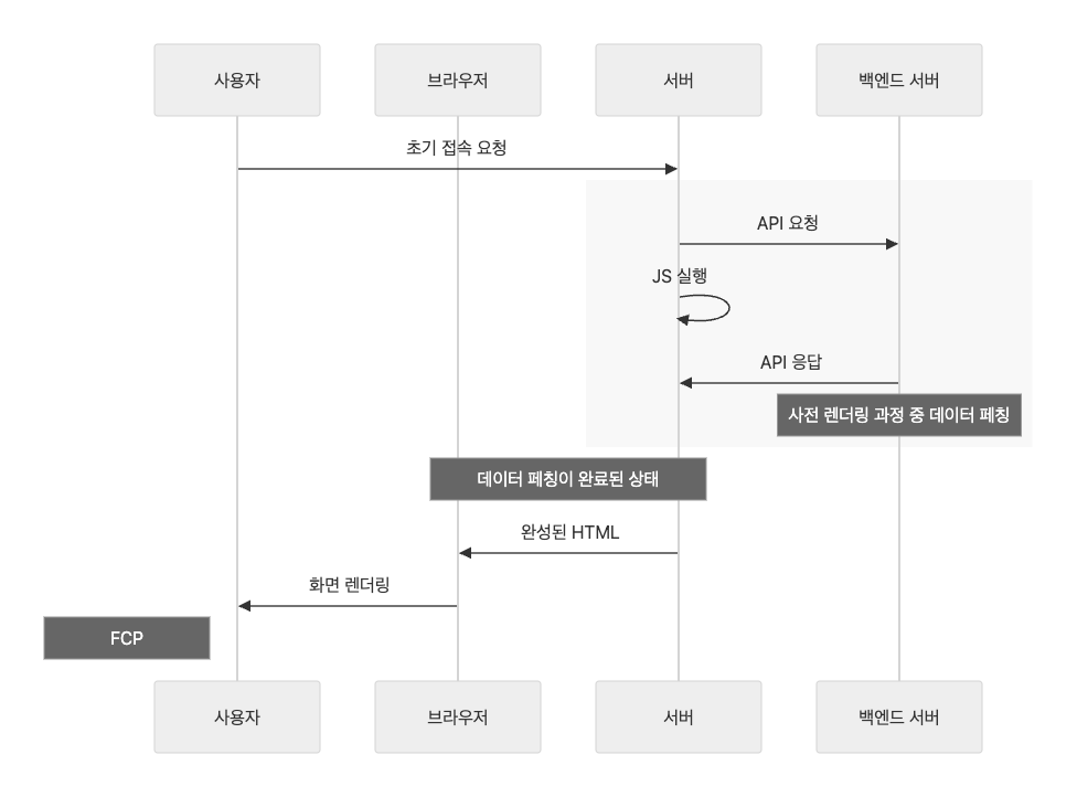 SSR에서는 브라우저가 접속 요청을 할 때마다 Next.js 서버가 사전 렌더링을 진행하고 새롭게 생성한 페이지를 브라우저에 전달한다.